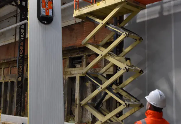 Este robusto elevador está perfectamente equipado para instalar fachadas interiores o bajo voladizos. En estos casos, CladBoy compact normalmente se utiliza junto con CraneArm. Con la combinación de CladBoy compact, una carretilla elevadora o manipulador telescópico y CraneArm, la instalación de paneles nunca había sido tan sencilla.