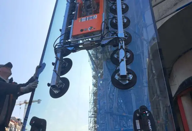 El uso de vidrio curvo es muy común en la construcción, puesto que permite crear edificios únicos y estéticos con un aire moderno. Además, los paneles de vidrio curvo son cada vez más voluminosos y pesados, por lo que se necesita una solución que permita instalarlos de forma segura y facilite el trabajo al equipo de instalación. Para ello, la mejor alternativa es utilizar un elevador de vidrio, por lo que VIAVAC ha desarrollado uno que cumple ambas funciones. VIAVAC GBXL Curved permite instalar vidrio con un peso de hasta 700 kg.