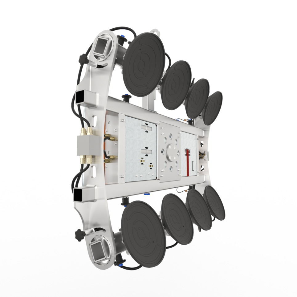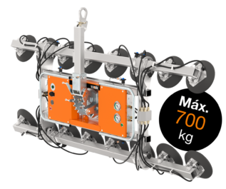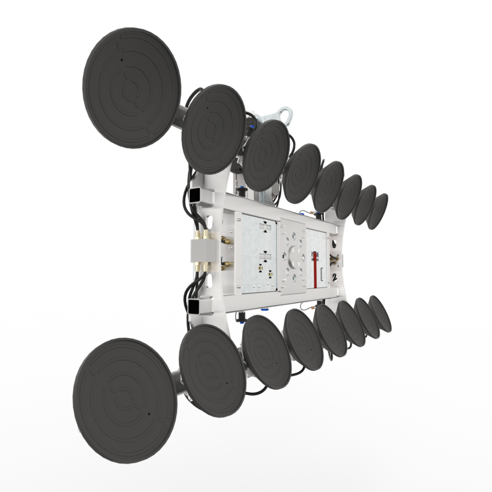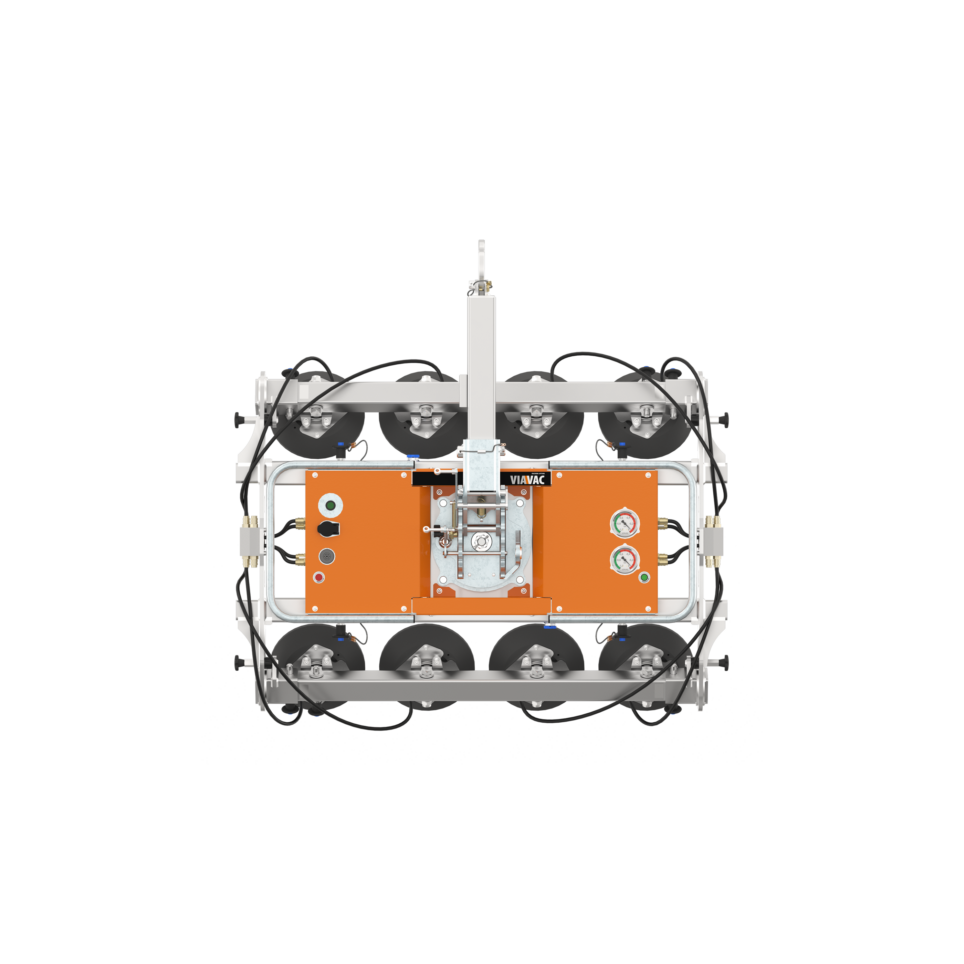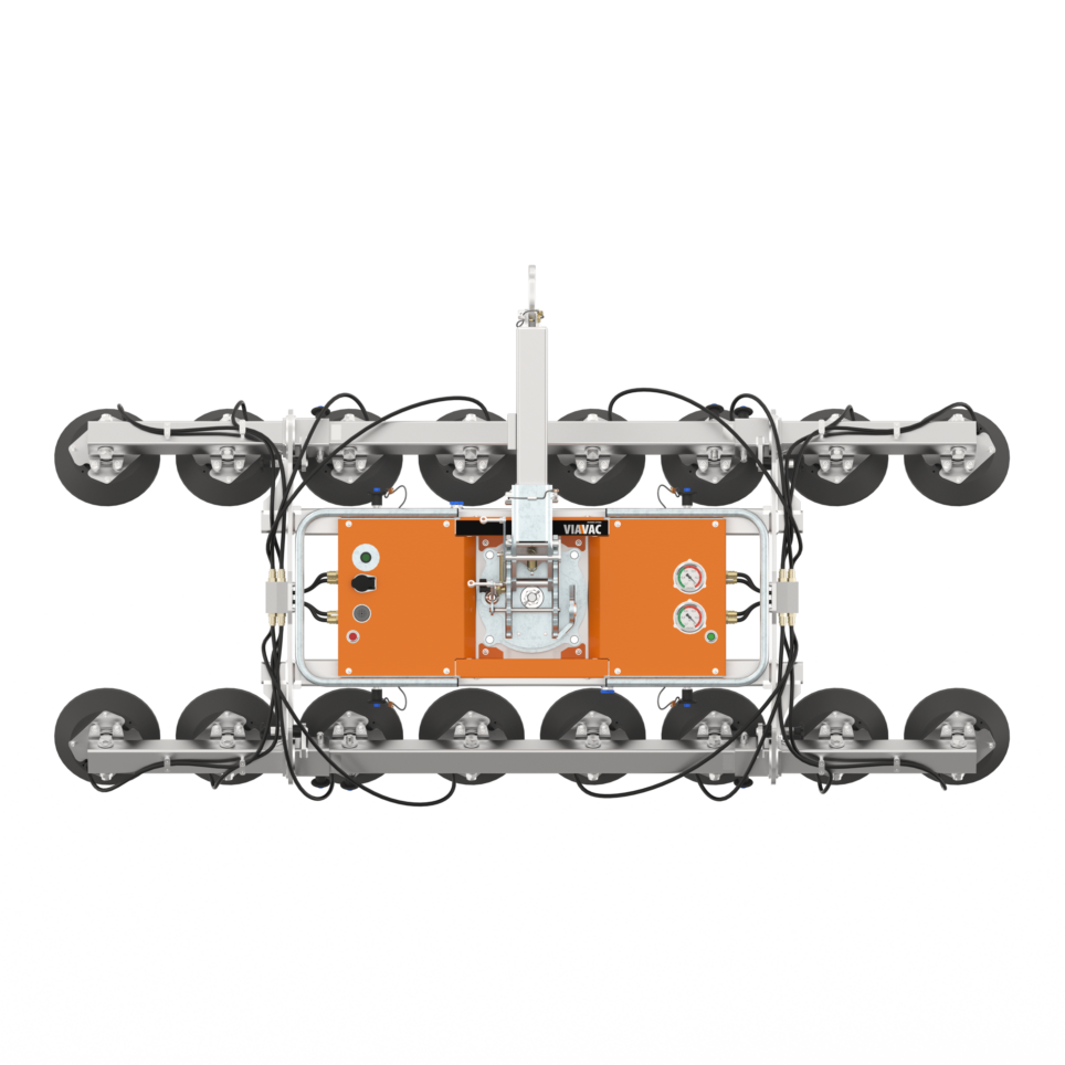 VIAVAC GBXL Curved se monta de forma rápida y sencilla. Además, dispone de dos configuraciones: la más pequeña permite elevar vidrio curvo de hasta 350 kg. ¿Necesita mayor capacidad? Puede ampliar la capacidad con el montaje de ventosas adicionales que aumentan la capacidad de elevación a 700 kg. Las dimensiones del elevador de vidrio se pueden ajustar, como mínimo, en 960 × 1100 mm (350 kg) hasta un máximo de 960 × 2200 mm (700 kg).
